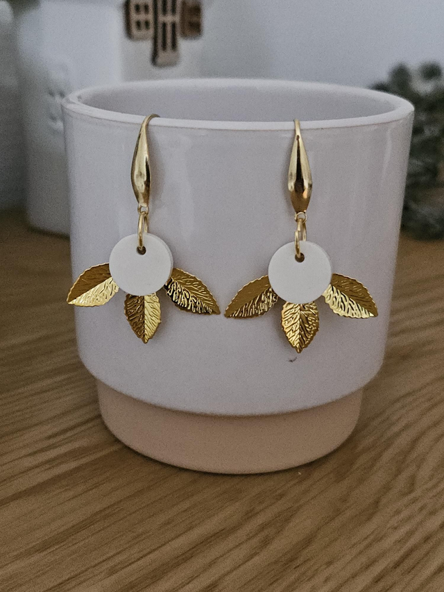 Ces boucles d’oreilles en acier inoxydable et jesmonite allient modernité et inspiration naturelle. La pièce en acier inoxydable revisite avec élégance le design d’une feuille composée, aux lignes épurées et contemporaines. La touche de jesmonite, travaillée avec soin, apporte une texture unique et un charme artisanal à ce bijou. Légères, ces boucles d’oreilles sont idéales pour sublimer vos tenues avec une touche naturelle et sophistiquée.