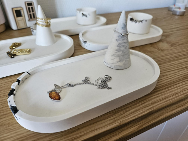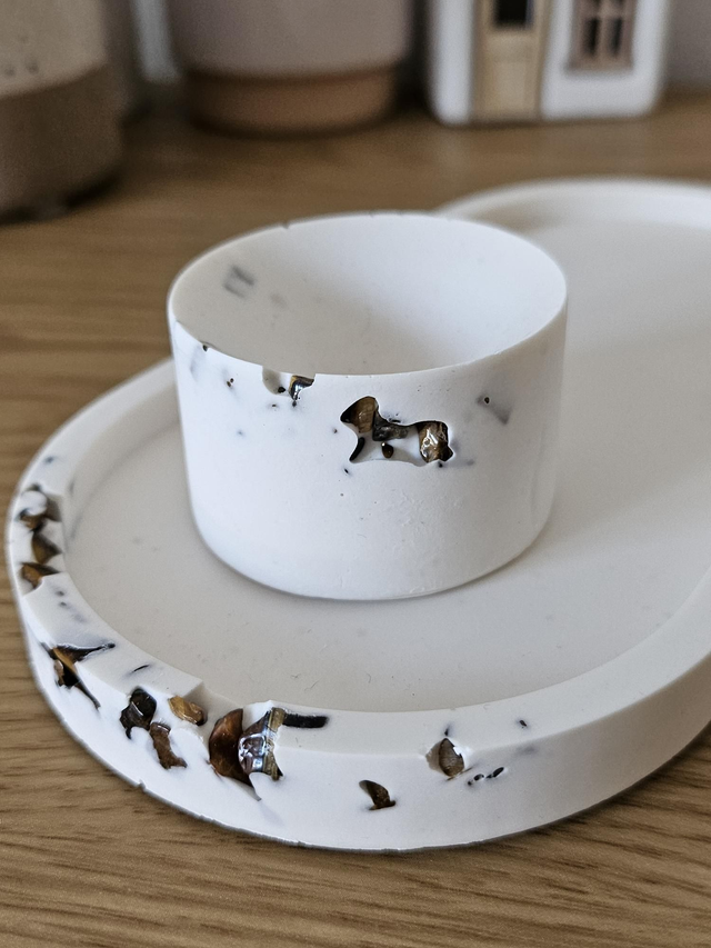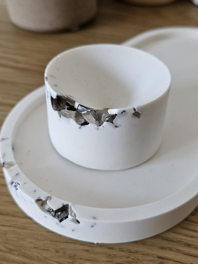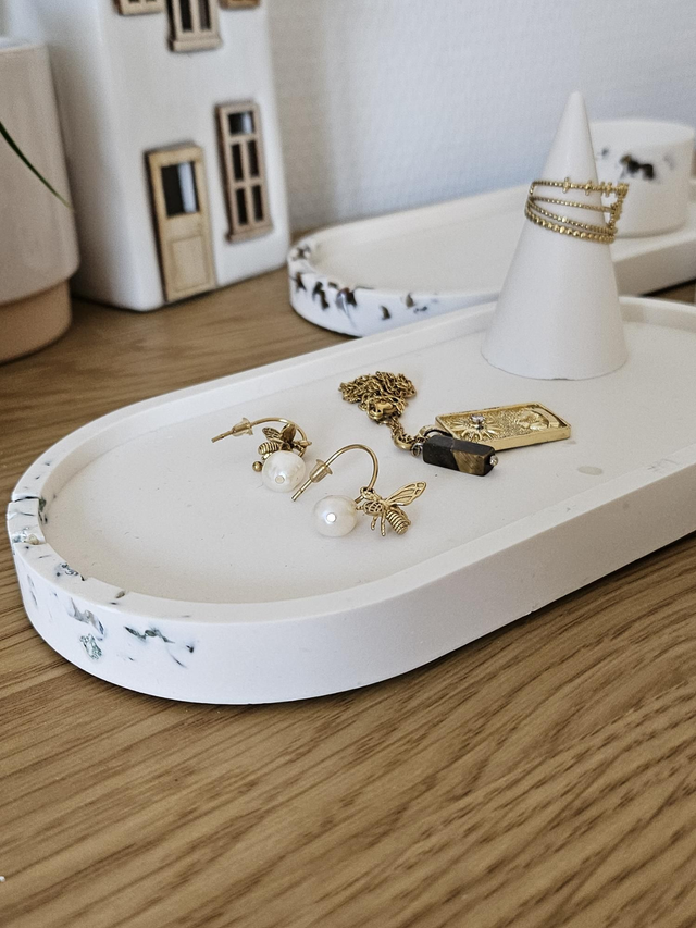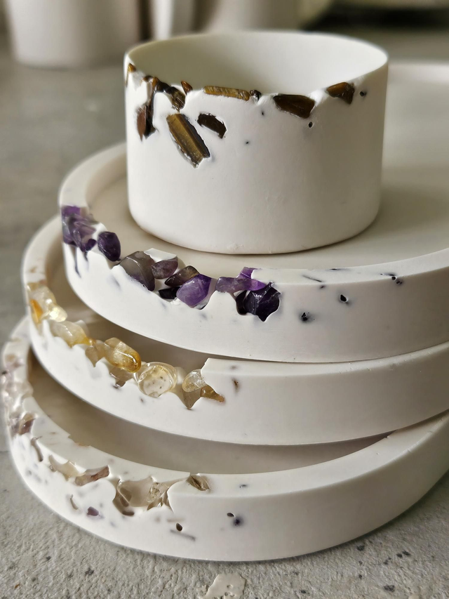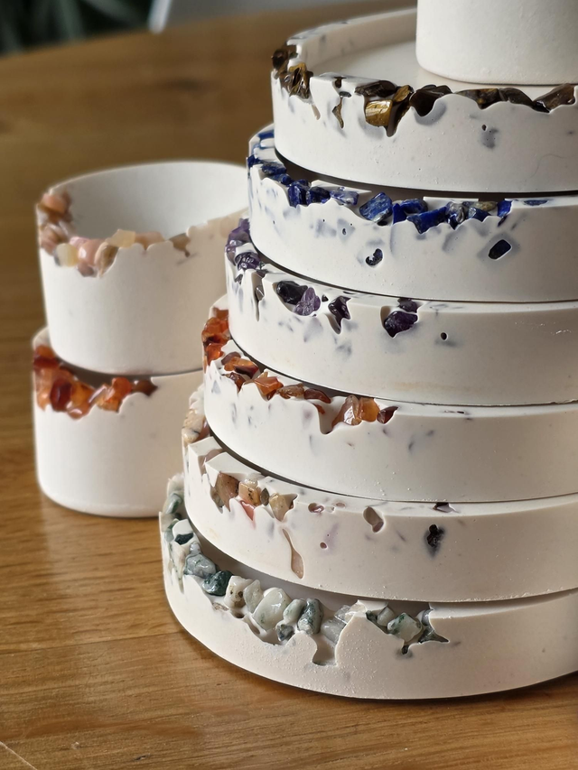 Tablette en Jesmonite de 17cm avec bord incrusté de pierres semi-précieuses.